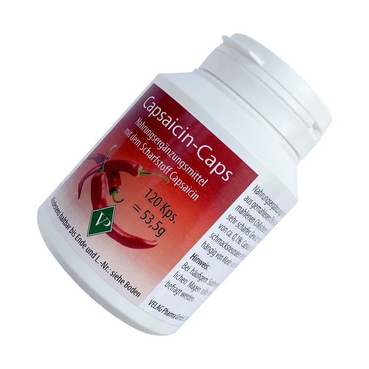 Капсаицин содержится в мякоти перца чили и отвечает за его остроту. Капсаицин из молотых стручков чили способствуют сжиганию энергии. Средство считается сжигатель жира, который помогает похудеть и поддерживать его. Кроме свойств разжижать кровь, капсаициновые капсулы также способствуют кровообращению, расширяют сосуды и могут укрепить потенцию и либидо.