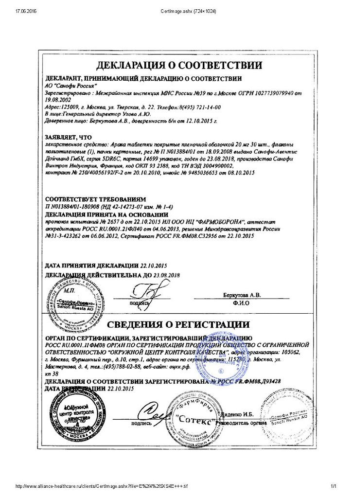 Арава продаётся строго по рецепту, полученному у врача. Перед применением медикамента придётся посетить медицинского специалиста.