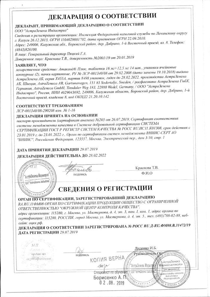 Прежде чем купить Атаканд 16мг в ближайшей аптеке, нужно обязательно проконсультироваться с врачом. Самолечение опасно для Вашего здоровья.