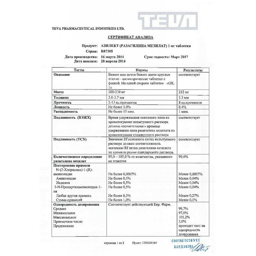 Прежде чем купить Азилект табл. 1мг №30 в ближайшей аптеке, нужно обязательно проконсультироваться с врачом. Самолечение опасно для Вашего здоровья.