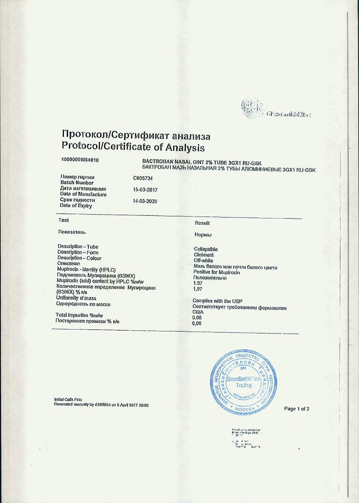 По рекомендациям врачам нужно было приобрести мазь Бактробан. К сожалению, столкнулась с довольно частой проблемой - в нашей стране такая назальная мазь попросту отсутствует.