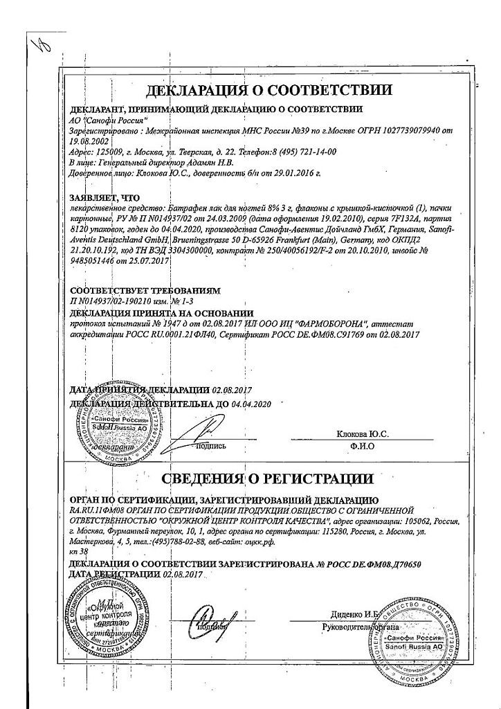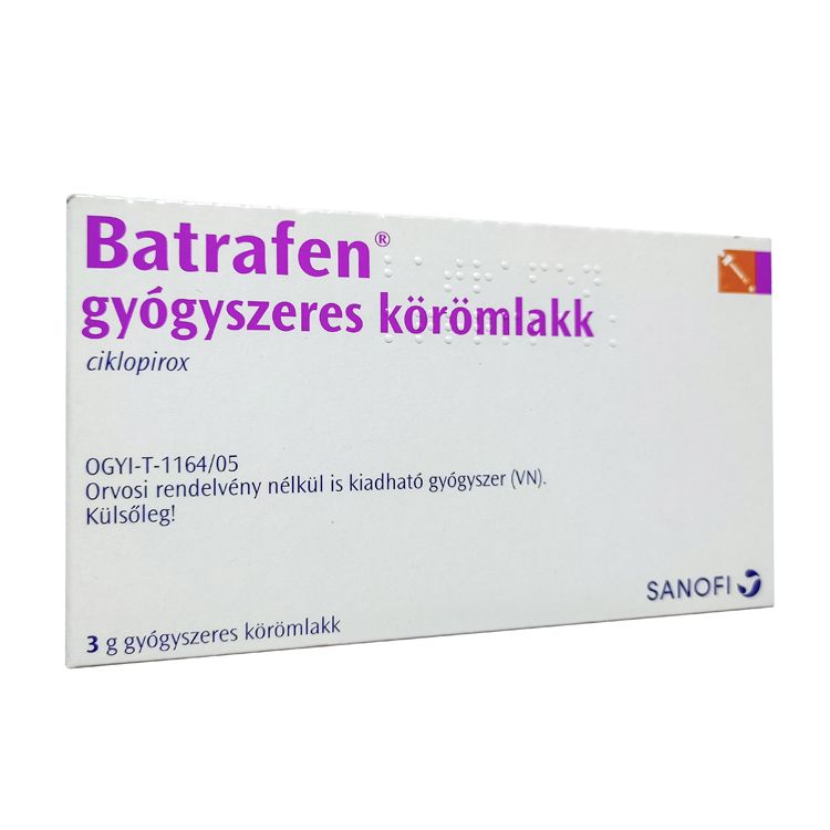 Лак Батрафен - противогрибковый препарат, используемый для лечения грибковых инфекций ногтей. Активное вещество препарата Циклопирокс - противогрибковый препарат с широким спектром противогрибкового действия.