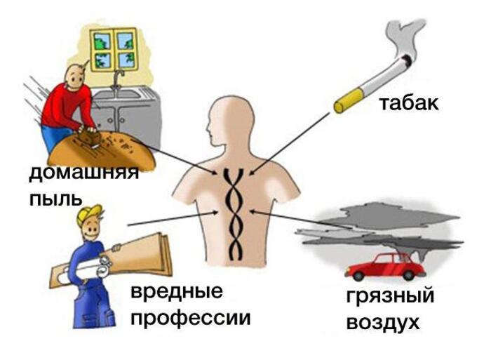 Воздействие химических факторов – еще одна причина развития недуга. Работа на вредном производстве, вдыхание вредных веществ, испарений бытовой химии, зерновой пыли, волокон ткани, дыма, пыли, смога. Такой вид заболевания дыхательной недостаточности работники производств называют «профессиональный бронхит». Развитию хронического бронхита служит также курение – как для самого курильщика, так и для окружающих его людей.