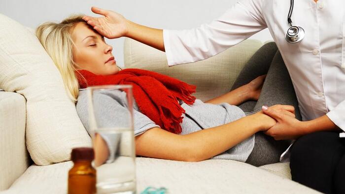 При несложном течении заболевания у взрослых госпитализация не требуется. Чаще всего лечение проходит дома. Большую роль здесь играет соблюдение режима. Комнату, где изолирован больной, необходимо проветривать до 10 раз в сутки, в зависимости от времени года. Обязательными условиями для выздоровления являются: влажная уборка, регулярная замена одежды и постельного белья, обильное питье, частое диетическое питание малыми порциями, увлажнение воздуха.
