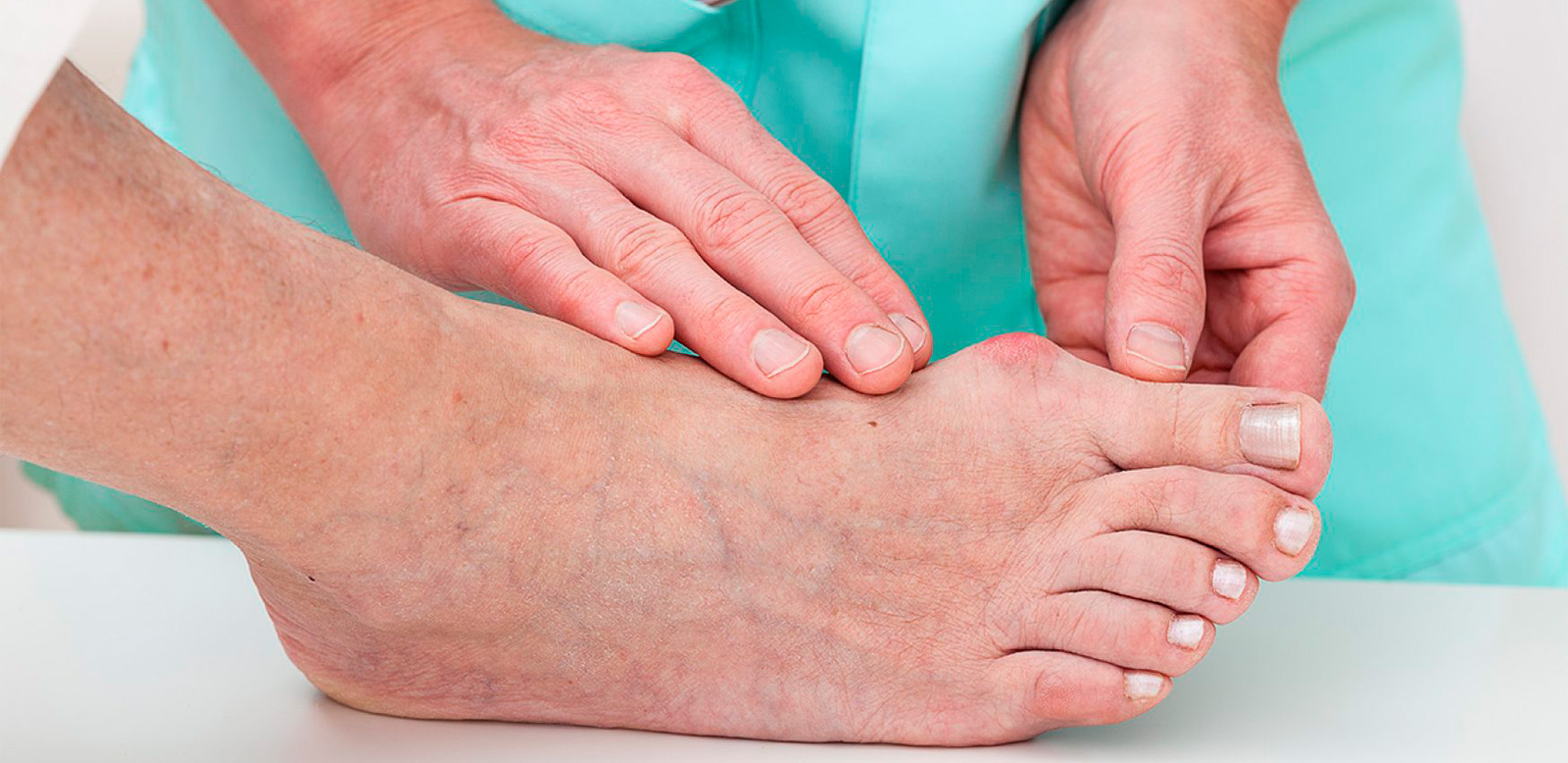 Чаще всего подагра локализуется в суставах ног. Как правило, страдают фаланги больших пальцев.