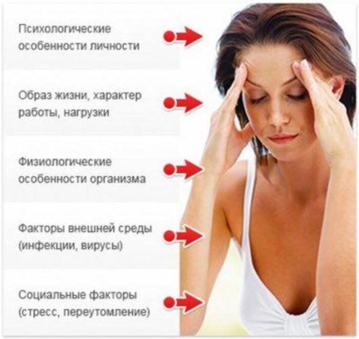 В зависимости от причины у пациента преобладают симптомы определенного характера.