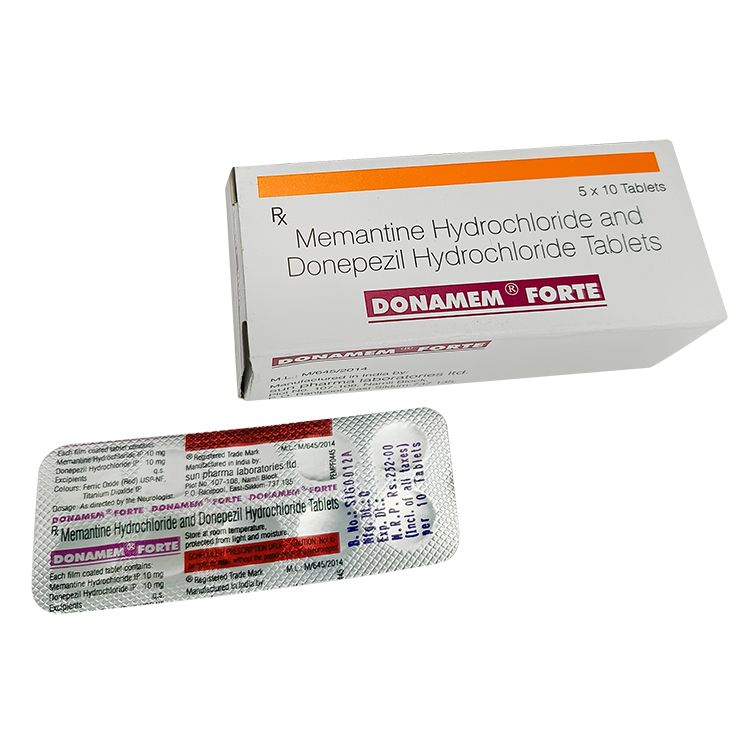 Donamem Forte — комбинированный препаратдля симптоматической терапии умеренных и выраженных форм болезни Альцгеймера. Донепезил усиливает передачу нервных импульсов в коре головного мозга, мемантин защищает нейроны от избыточного воздействия возбуждающего нейротрансмиттера глутамата. Вместе они способствуют улучшению процессов памяти, внимания и повседневной активности.