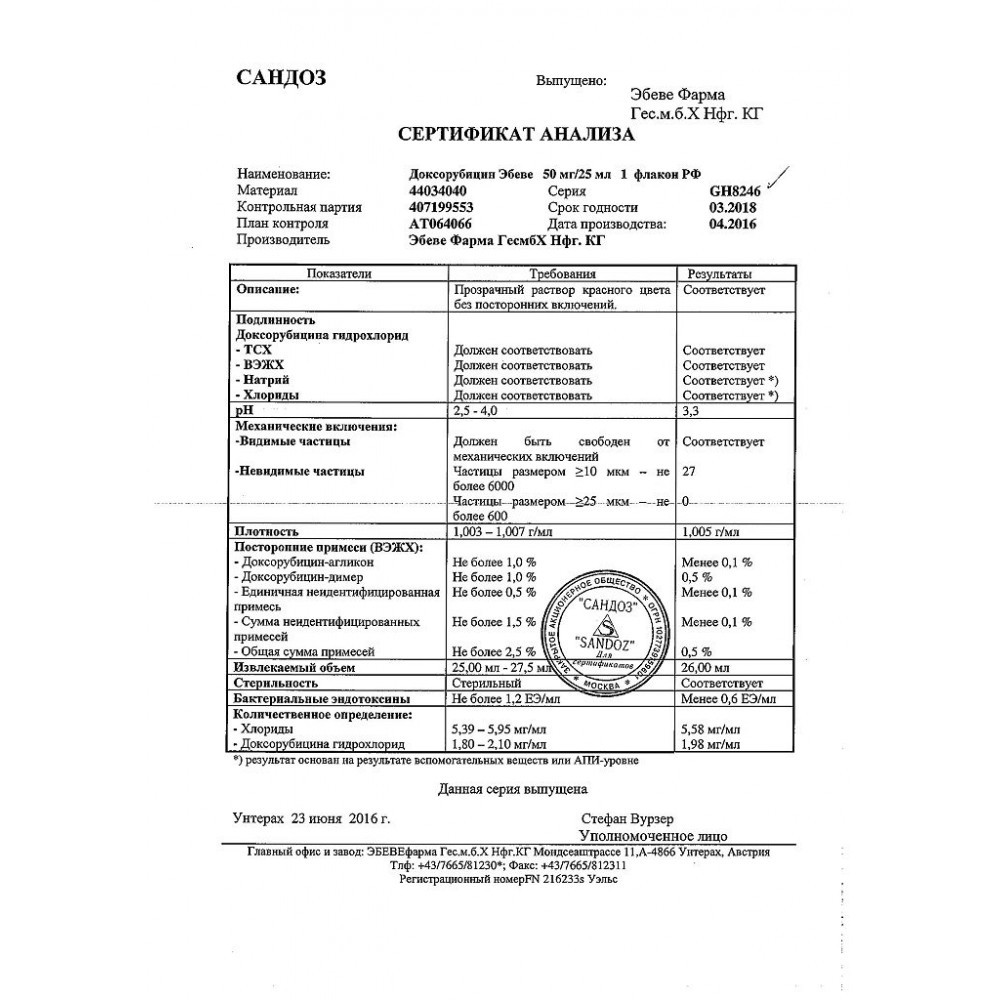 У меня есть вопрос по препарату "Доксорубицин Эбеве/Медак Германия 2мг/мл 25мл (50мг)":