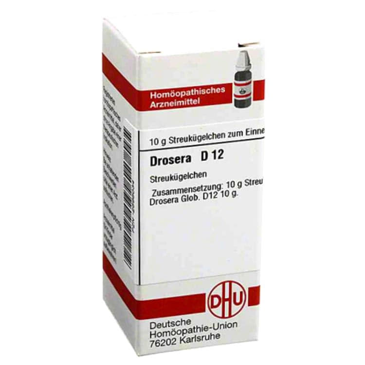 Это гомеопатическое средство применяется при воспалении верхних дыхательных путей (коклюш, бронхиолит, астматический бронхит), лимфоаденопатии, лихорадке. Комплекс растительных и минеральных компонентов препарата оказывает противовоспалительное, спазмолитическое и противокашлевое действие. Основными активными компонентами Дрозера являются Росянка капская (Drosera capensis) и медь металлическая (Cuprum aceticum). Экстракт Росянки купирует приступ кашля, разжижает и облегчает выведение мокроты. Медь уменьшает симптоматику астматических явлений, снимает воспаление в лимфатических узлах. На начальных этапах лечения могут усиливаться клинические симптомы заболевания, в этом случае необходимо обратиться к лечащему врачу. Препарат не вызывает побочных эффектов, но не назначается пациентам до 18 лет и при наличии гиперчувствительности к его компонентам.