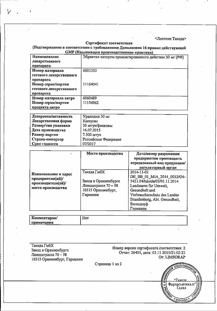 Прежде чем купить Эбрантил (Урапидил) 30мг капсулы в ближайшей аптеке, нужно обязательно проконсультироваться с врачом. Самолечение опасно для Вашего здоровья.