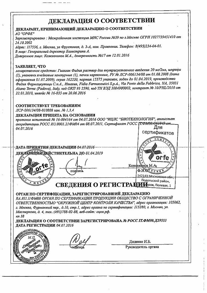 Прежде чем купить Гиалган Фидия в ближайшей аптеке, нужно обязательно проконсультироваться с врачом. Самолечение опасно для Вашего здоровья.