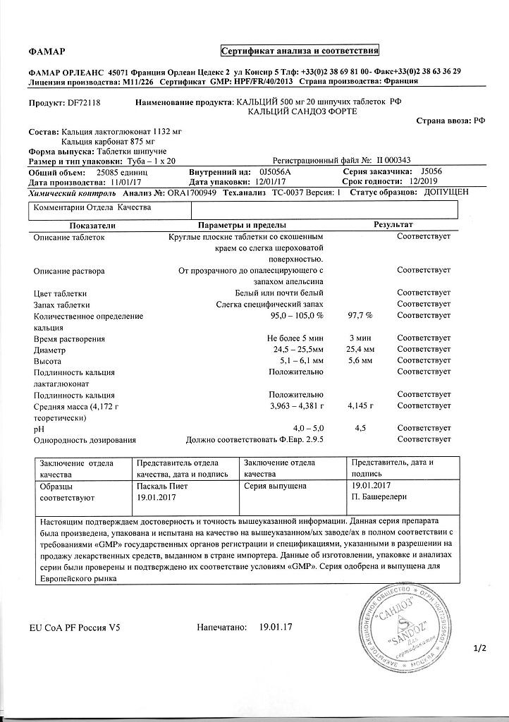 Прежде чем купить Кальций Сандоз Форте в ближайшей аптеке, нужно обязательно проконсультироваться с врачом. Самолечение опасно для Вашего здоровья.