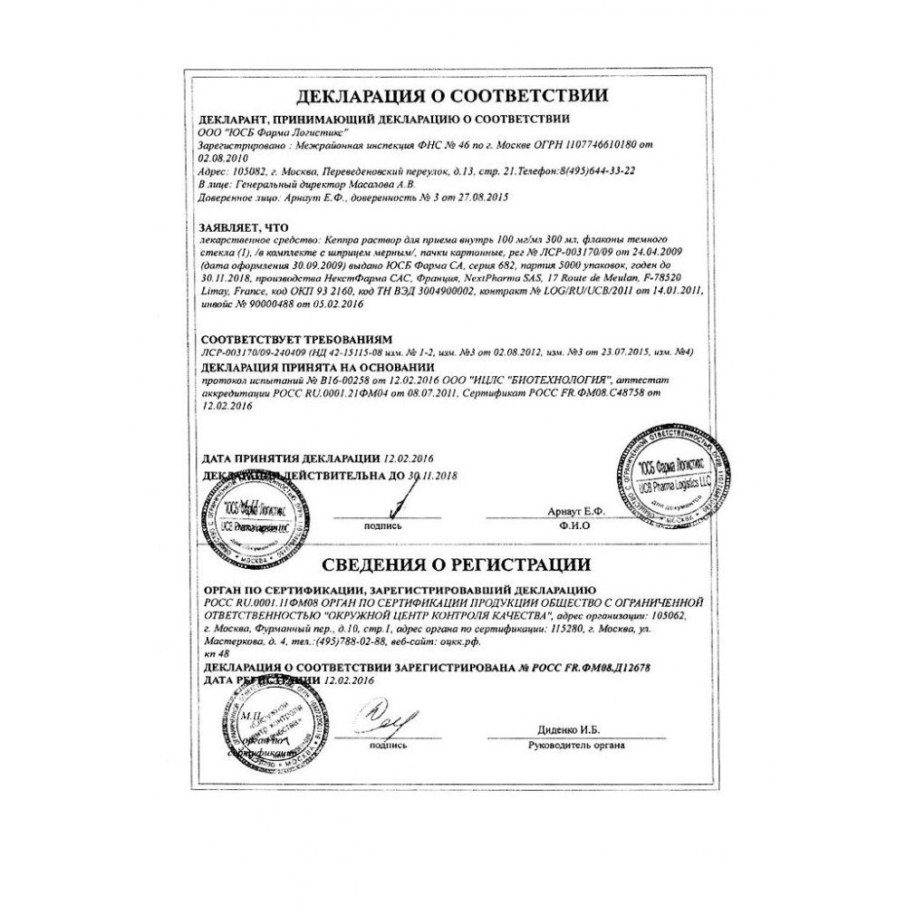 Кеппра раствор для приема внутрь 100 мг/мл 300мл | Германия | 6 860 руб. | флакон 300мл |