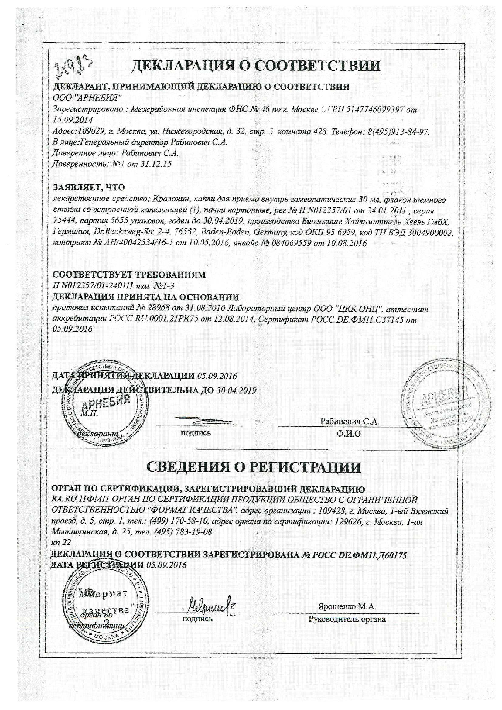 Кралонин (Cralonin) – это комплексное гомеопатическое средство, повышающее защитные силы и нормализует функции организма с помощью натуральных компонентов, которые входят в состав капель.