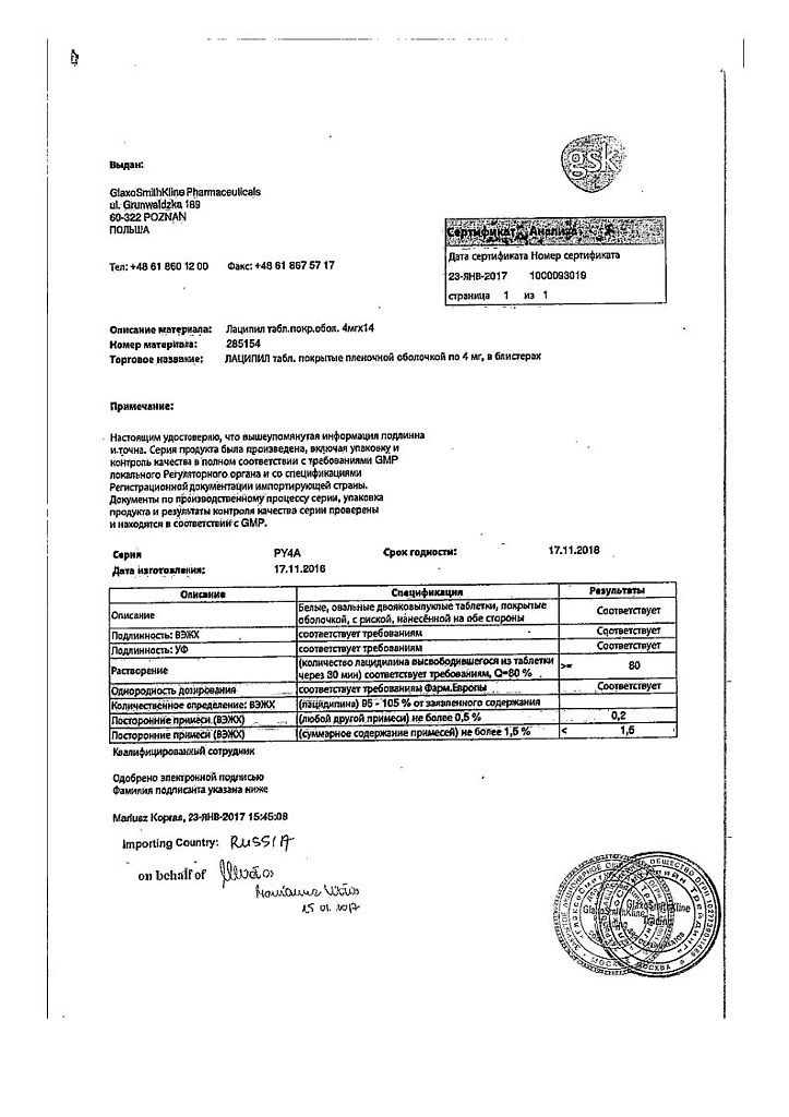 Прежде чем купить Лаципил (Лацидипин) 4мг в ближайшей аптеке, нужно обязательно проконсультироваться с врачом. Самолечение опасно для Вашего здоровья.