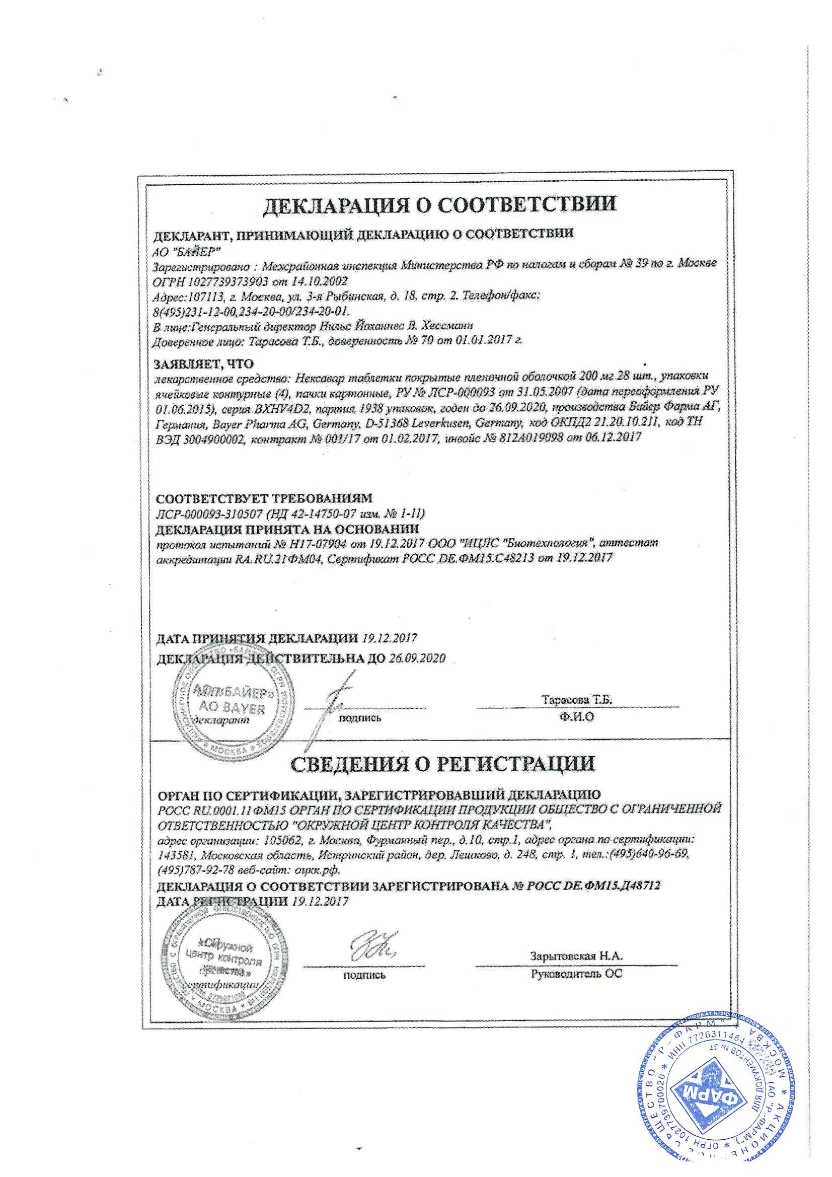 Прежде чем купить Нексавар в ближайшей аптеке, нужно обязательно проконсультироваться с врачом. Самолечение опасно для Вашего здоровья.