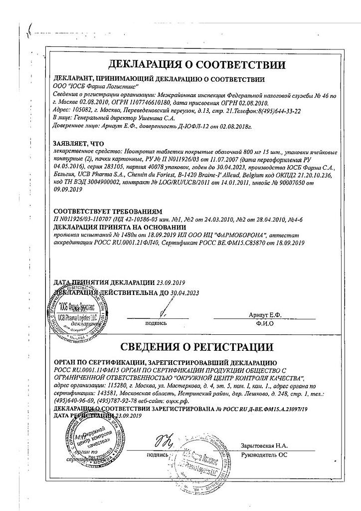 Прежде чем купить Ноотропил таблетки 800мг в ближайшей аптеке, нужно обязательно проконсультироваться с врачом. Самолечение опасно для Вашего здоровья.