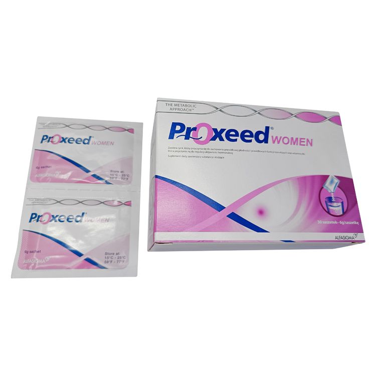 Proxeed Women – комплексная пищевая добавка, разработанная для поддержания женского репродуктивного здоровья. Продукт содержит сочетание аминокислот (L-карнитин, ацетил-L-карнитин, L-аргинин, N-ацетилцистеин) и обогащённый набор витаминов и минералов, необходимых для нормальной функции яичников, созревания яйцеклеток и поддержания оптимального окислительного баланса в репродуктивной системе. Регулярный приём Proxeed Women может способствовать повышению шансов на естественное зачатие и поддержанию организма в ходе вспомогательных репродуктивных технологий.