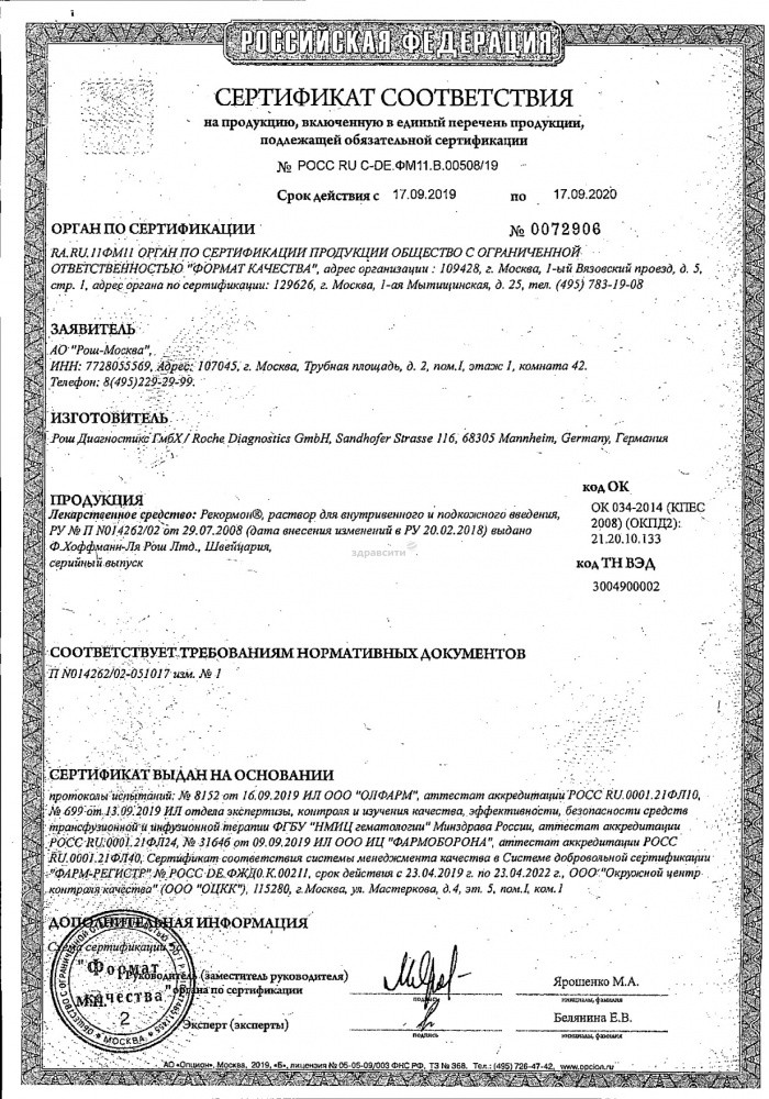 Прежде чем купить Рекормон (в Европе название НеоРекормон) Эритропоэтин в ближайшей аптеке, нужно обязательно проконсультироваться с врачом. Самолечение опасно для Вашего здоровья.