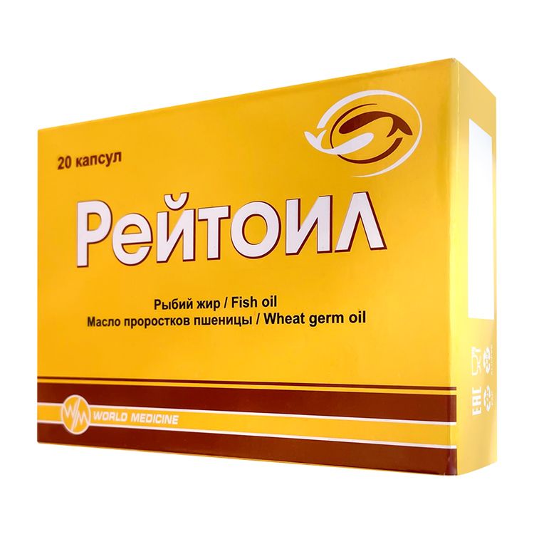 Рейтоил - это биологически активная добавка к пище на основе рыбьего жира, богатого полиненасыщенными жирными кислотами: эйкозапентаеновой кислотой (ЭПК) и докозагексаеновой кислотой (ДГК). Данные вещества являются важными компонентами в регуляции липидного обмена, снижении риска сердечно-сосудистых заболеваний, улучшении мозгового кровообращения и уменьшении воспалительных реакций.