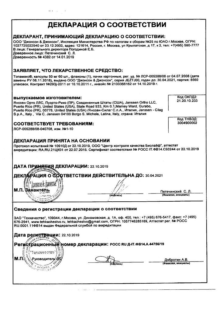 Прежде чем купить Топамакс 50мг в ближайшей аптеке, нужно обязательно проконсультироваться с врачом. Самолечение опасно для Вашего здоровья.