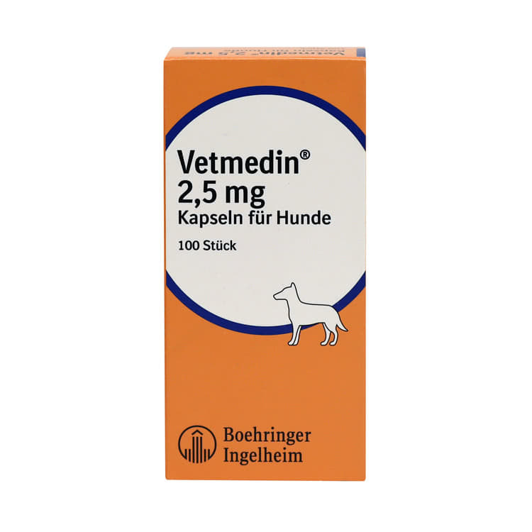 Капсулы Ветмедин 2,5 мг используются в терапии сердечно-сосудистой недостаточности у собак в случаях дилатационной кардиомиопатии или неправильной работы митрального или трикуспидального клапана. При дилатационной кардиомиопатии полости сердца растянуты (при этом толщина их стенок не уменьшена), в результате чего кровь во время сокращения сердечной мышцы не полностью выходит в сосуды. Неправильная работа клапанов становится причиной обратного кровотока. В результате возникают одышка, кашель, асцит (скопление жидкости в брюшной полости), невозможность переносить физические нагрузки. Основное действующее вещество Пимобендан увеличивает силу сокращения сердечной мышцы, тонизирует гладкую мускулатуру кровеносных сосудов (препятствует вазодилатации), увеличивает просвет сосудов. В результате сердце начинает работать эффективнее, нагрузки на него снижаются. Животным, которые страдают застойной сердечной недостаточностью, Ветмедин в индивидуально подобранной дозировке следует принимать всю жизнь. Препарат метаболизируется в печени и выводится через ЖКТ с каловыми массами.