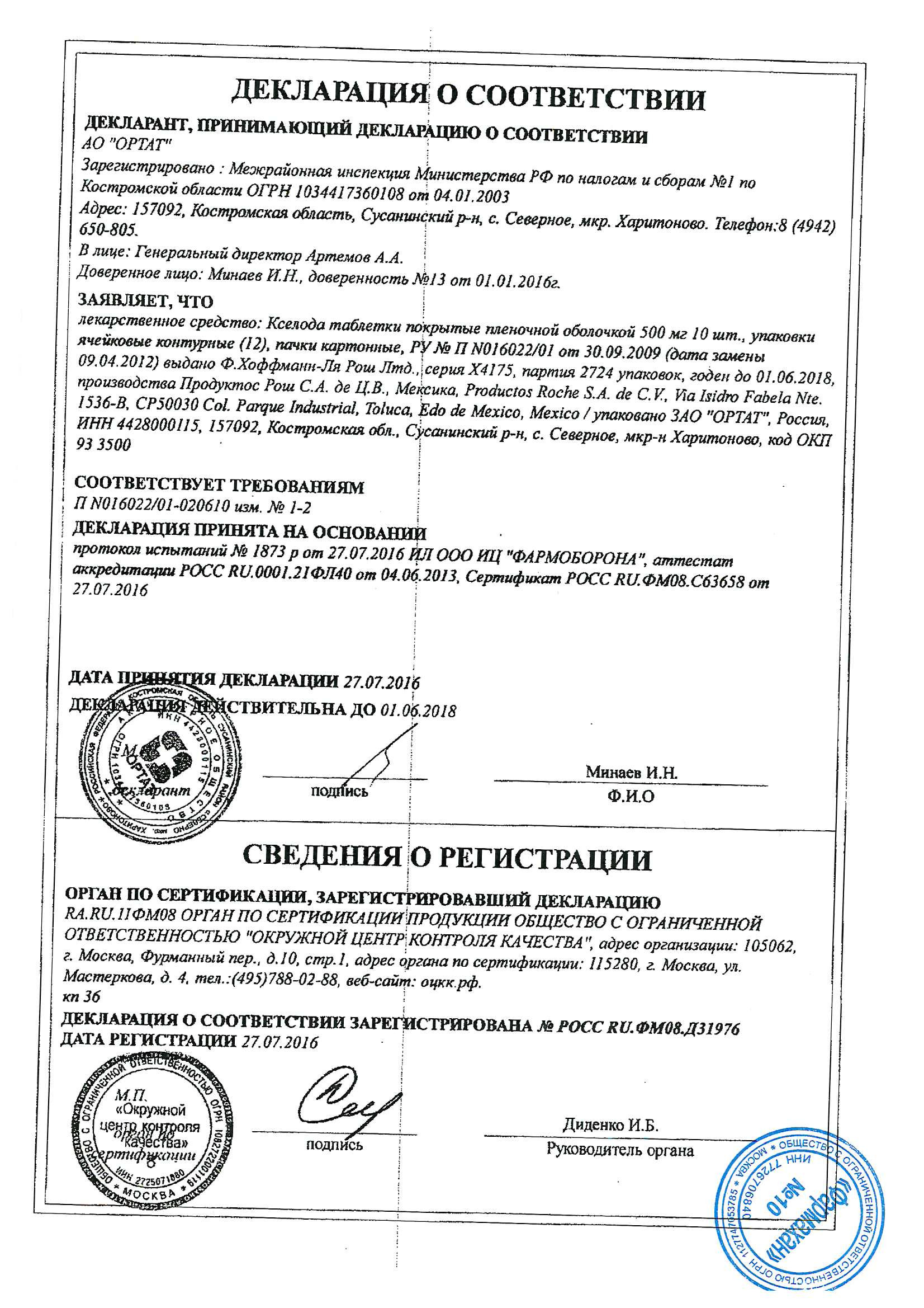 | Кселода 500 мг таблетки оригинал Европа №120 | Германия | 49 900 руб. | 120 таблеток по 500мг |